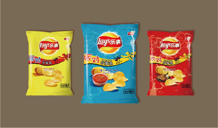 乐事薯片的消费人群特征是不满足于千篇一律的味道,总是希望尝试新鲜元素,洛可可品牌此次包装的设计目标就是使用不同个性的元素来满足不同口味的需求。在给消费者带来多种口味美食的同时带来超乎想象视觉体验。